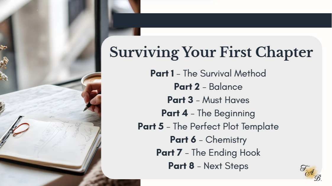 …then “Surviving Your First Chapter” is for you. Learn simple, actionable tools to tackle these fears, structure your story, and write with confidence.