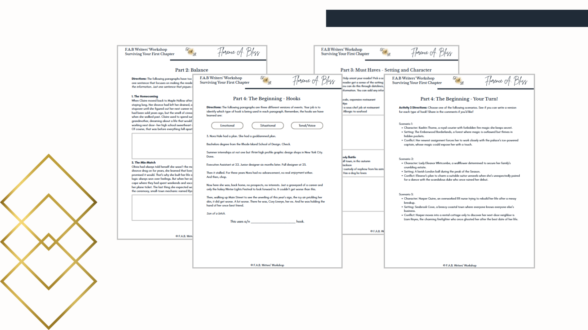 Worksheets that help you craft tension, character connection, and a compelling opening scene